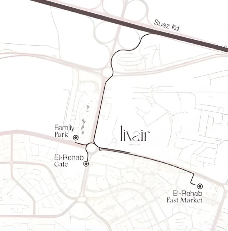 - يقع كمبوند ليفير التجمع الخامس على بعد 5 دقائق من طريق السويس.